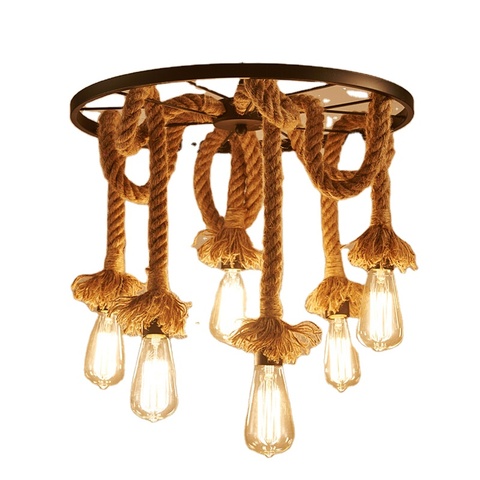 Lámpara Retro de viento Industrial para sala de estar, comedor, rueda Simple, arte moderno, dormitorio, cuerda de cáñamo creativa, candelabro